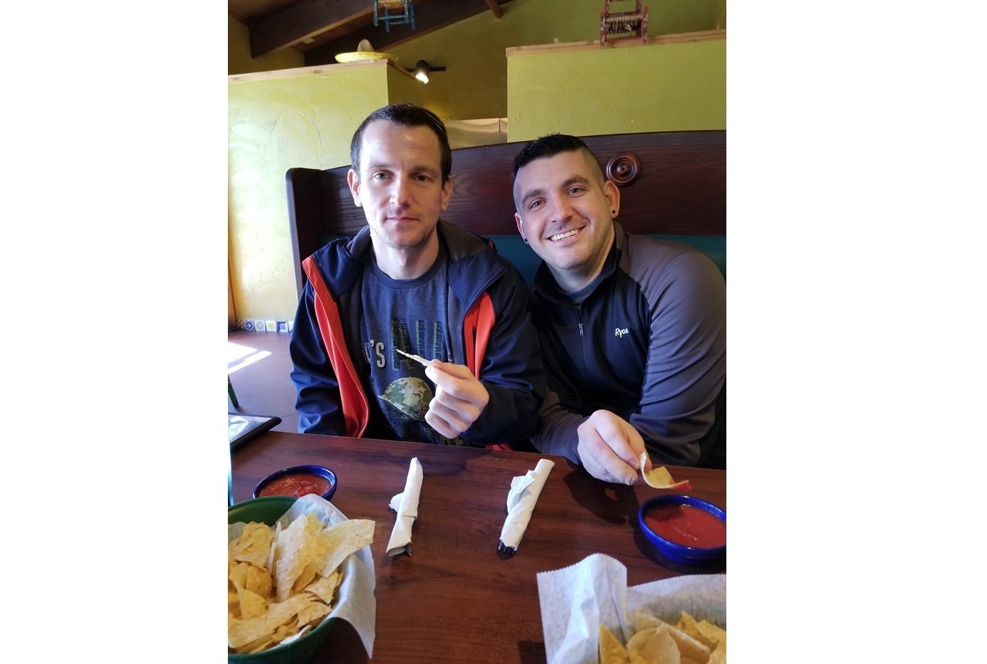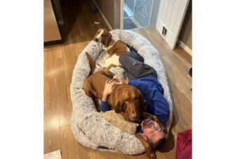 We live in a quiet neighborhood along the Indiana-Illinois border, about 45 minutes from downtown Chicago, providing access to all the museums, sports, culture, and festivals the area provides. We take pride in working on our home, completing several renovations by the work of our own hands. Ryan works at one of the premier high schools in the state, while John works at the leading Catholic school five minutes from our home. We enjoy taking our two dogs, Olaf and Minnie, on long walks around our quiet neighborhood to enjoy the sights and sounds our local nature preserve and playgrounds provide. They also enjoy cuddling with our three cats: Eve, Hercules, and Hades.