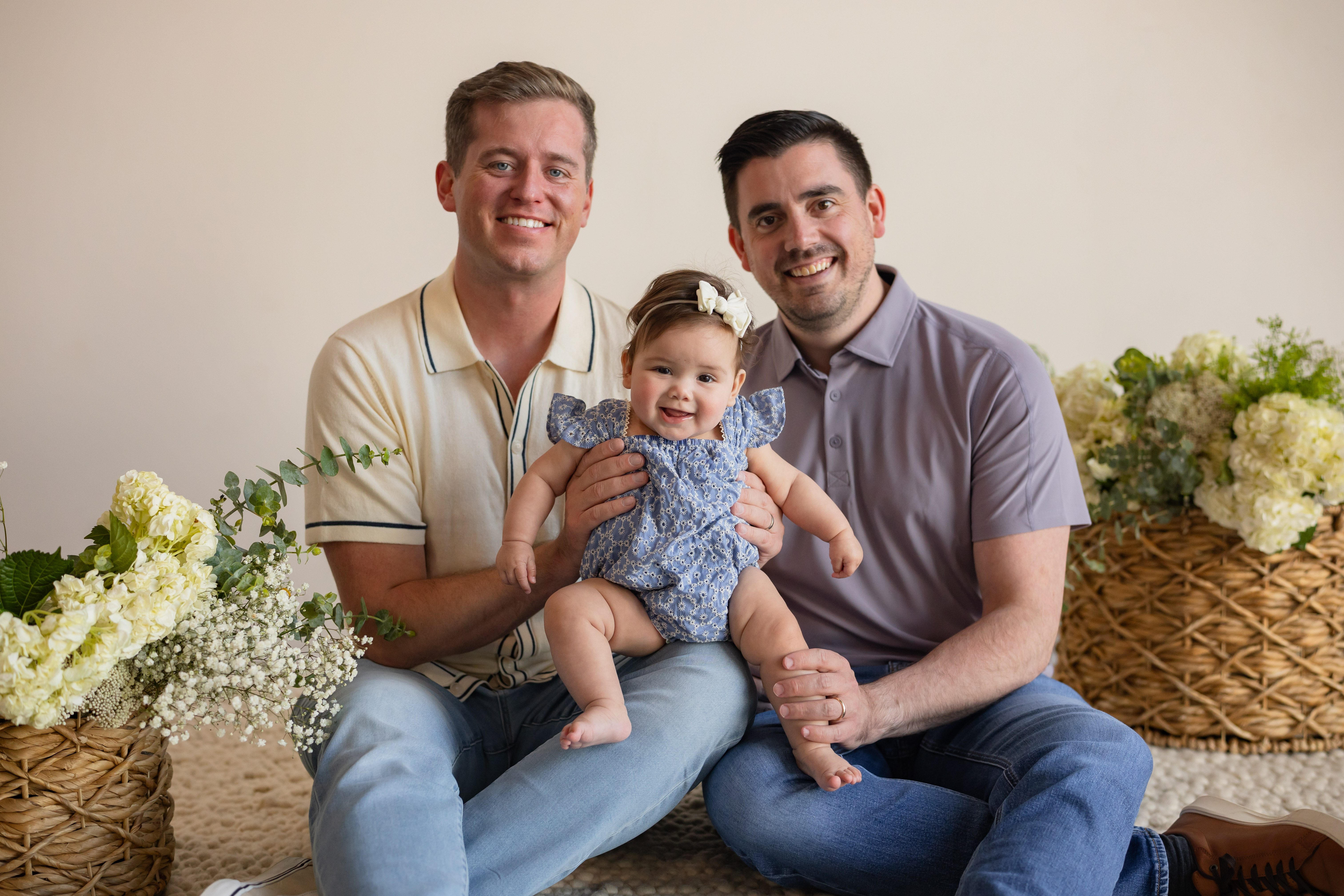 Ryan’s parents, sister, brother, and sister-in-law live only a couple hours away in Iowa. He comes from a very large extended family with over twenty aunts and uncles and over thirty cousins, all of whom we are very close. Growing up with a large family and spending so many birthdays and holidays together was Ryan’s favorite part of his childhood. We still get together many times a year. It is so fun to see how our family is growing and who brought the best appetizer! No matter where we are celebrating family, it's safe to say Grandma and Grandpa are spatting on calling dibs on holding their granddaughter.