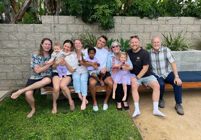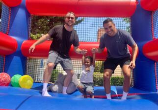 We live in a diverse, multiracial, and very LGBTQ-friendly community with many other families that look like ours. We have two cats, Grenny and Miso. We love spending time with our neighbors in each others’ front yards, barbecuing and having picnics, and watching our kids play under large, shady trees. Our four-bedroom, three-bathroom home is part of a special historic community of homes built in the 1930s. We have a front yard with a swing and a big backyard with a swimming pool, lots of grass to play on, fruit and vegetable garden beds, and apricot, orange, and plum trees. We’re close to high-quality, multilingual schools as well as parks and restaurants. We’re walking distance to multiple playgrounds and within a short drive of family, the beach, the mountains, and Disneyland!